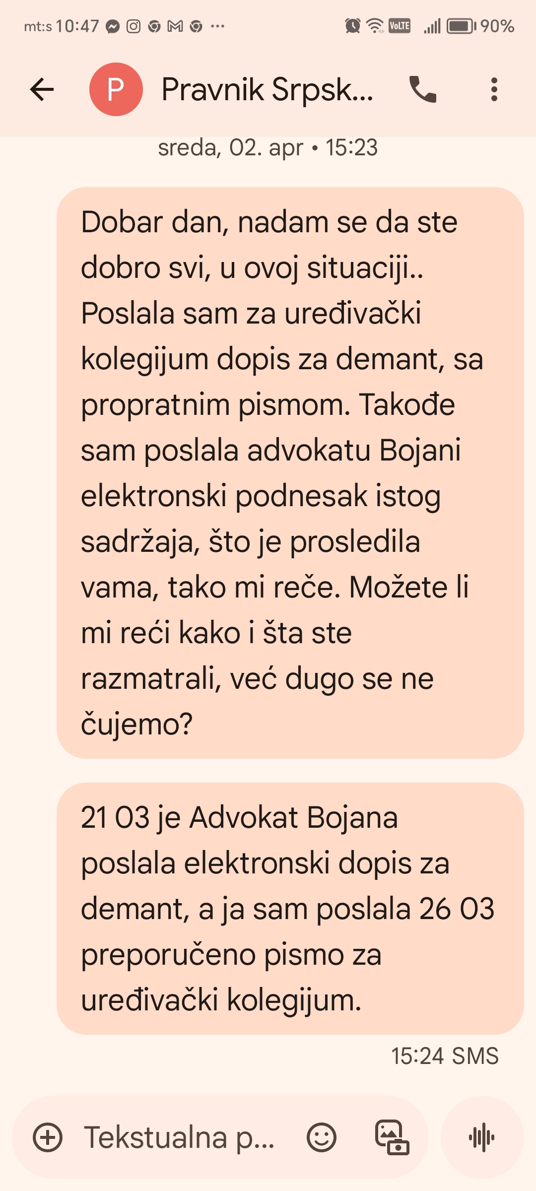 Komisija je konstatovala da je od objavljivanja teksta u „Srpskom telegrafu“ prošlo više od 90 dana, koliki je proisani rok za žalbe na štampane medije, pa ne bi ni mogla da razmatra žalbu na taj tekst, da se žalba ne odnosi i na portal, kao i na neobjavljivanje demantija.