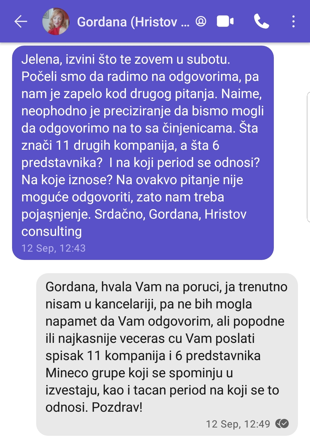 Po mišljenju Komisije za žalbe, problematično je i to što KRIK nije objavio odgovor Hristov konsaltinga (PR agencije, čiji je klijent MIneco Ltd), a objavili su svoje reagovanje na njega. Komisija prihvata da je moguće da, iz nekog razloga, KRIK nije dobio taj demanti, ali ga je očigledno video u drugim medijima, čim je na njega reagovao. U ovom slučaju je posebno problematično što je redakcija KRIK-a smatrala da ne treba da objavi odgovor, ali da je ispravno da objave svoje reagovanje na nešto što nisu objavili. Time je, po oceni Komisije prekršena i odredba koja se odnosi na etiku i kulturu javne reči, odnosno na obavezu objavljivanja odgovora.