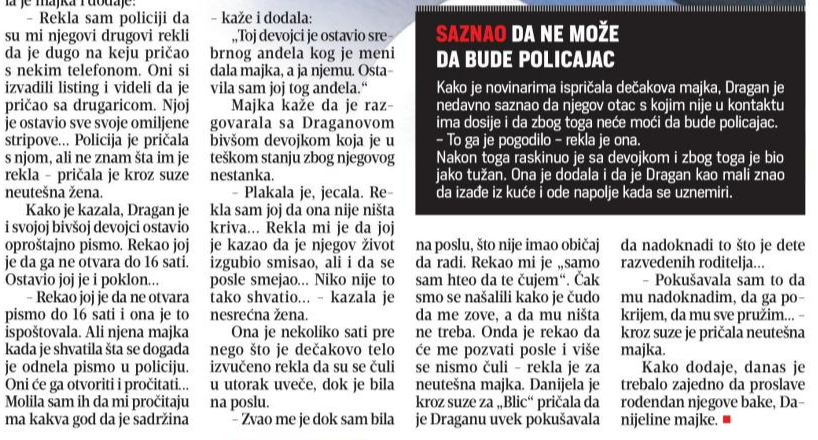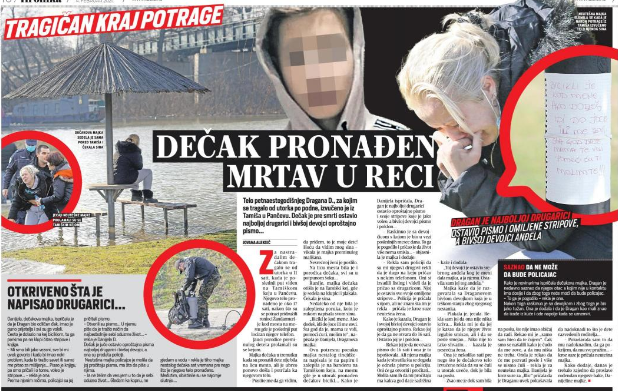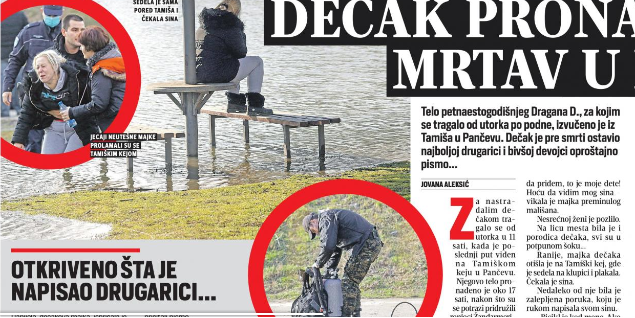 Tekstom “ Dečak pronađen mrtav u reci“ objavljenim 4.februara 2021. godine, dnevni list „Blic“
